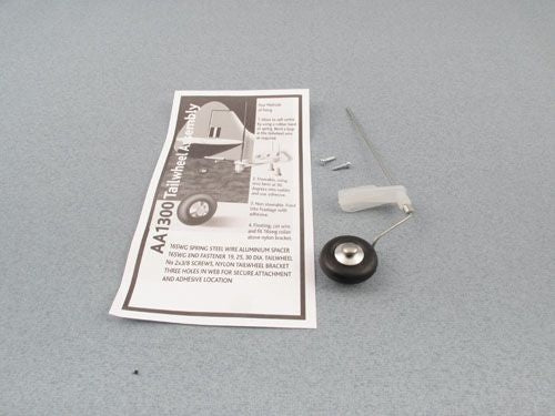 comprising: tailwheel, 2 screws, nylon bracket, aluminium collet, heat treated spring wire and wheel retaining fastener.