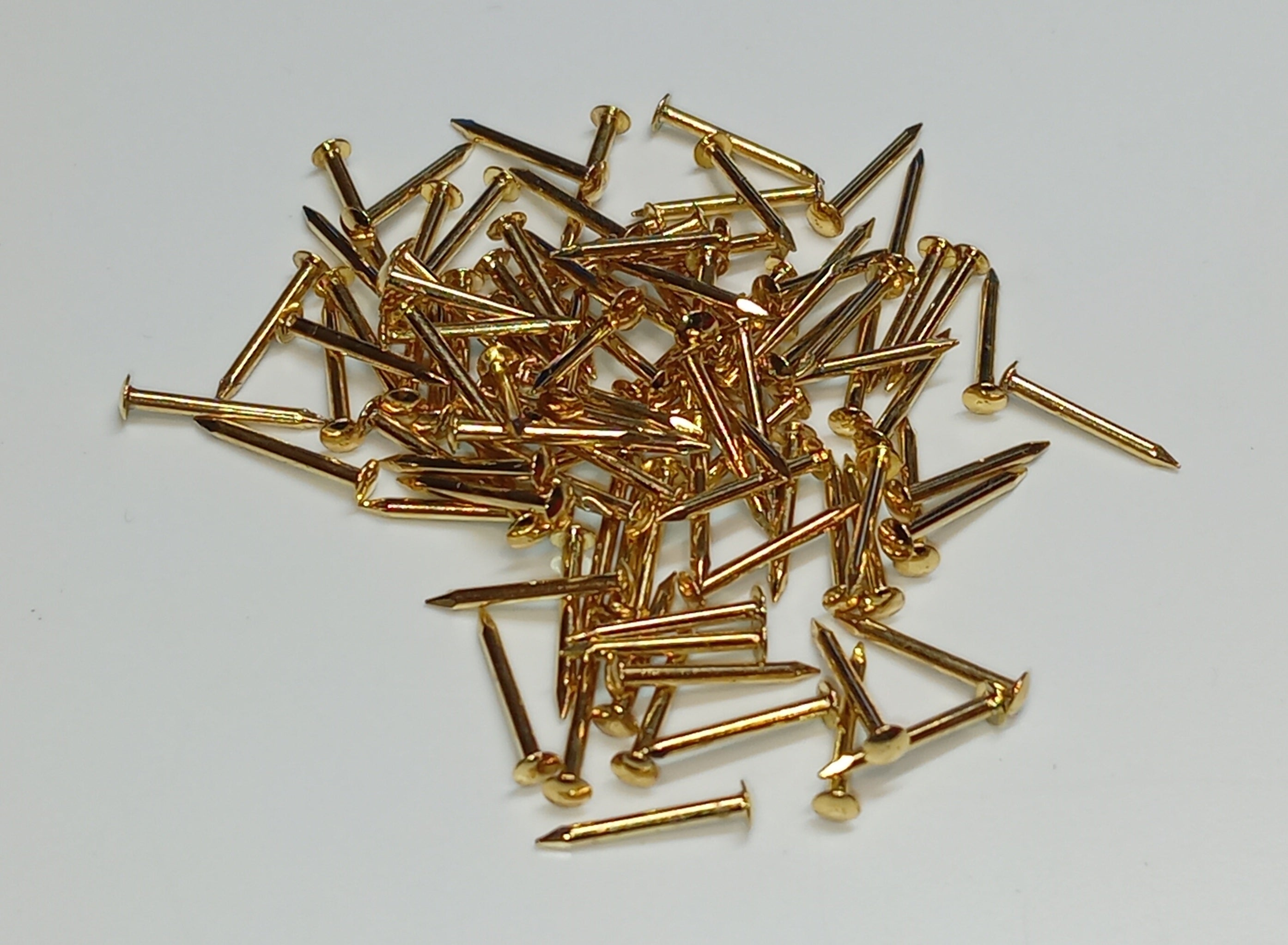 Brass plated fixing pins 10 x 1mm. suitable for dolls house, static models etc