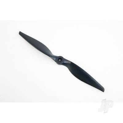 Thin, efficient propeller designed for electric-powered aircraft, featuring a 10-inch diameter and 7-inch pitch. Made from durable fiberglass composite in a stylish black finish, it includes one set of LPAR06E adapter rings for easy and secure installation.