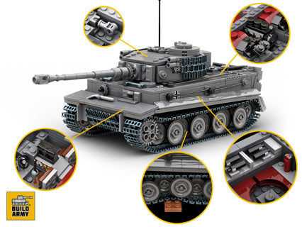 Step back in time and build your very own iconic WW2 German Tiger 1 tank in Lego compatible bricks! Widely regarded as the most iconic tank of World War II, The Tiger I was developed by Germany in response to the Soviet T-34 tank. Its heavy armour and a powerful 88mm gun made it a formidable opponent on the battlefield. Its distinctive design and role in key battles such as the Battle of Kursk and Normandy landings have cemented its status as a symbol of the war.