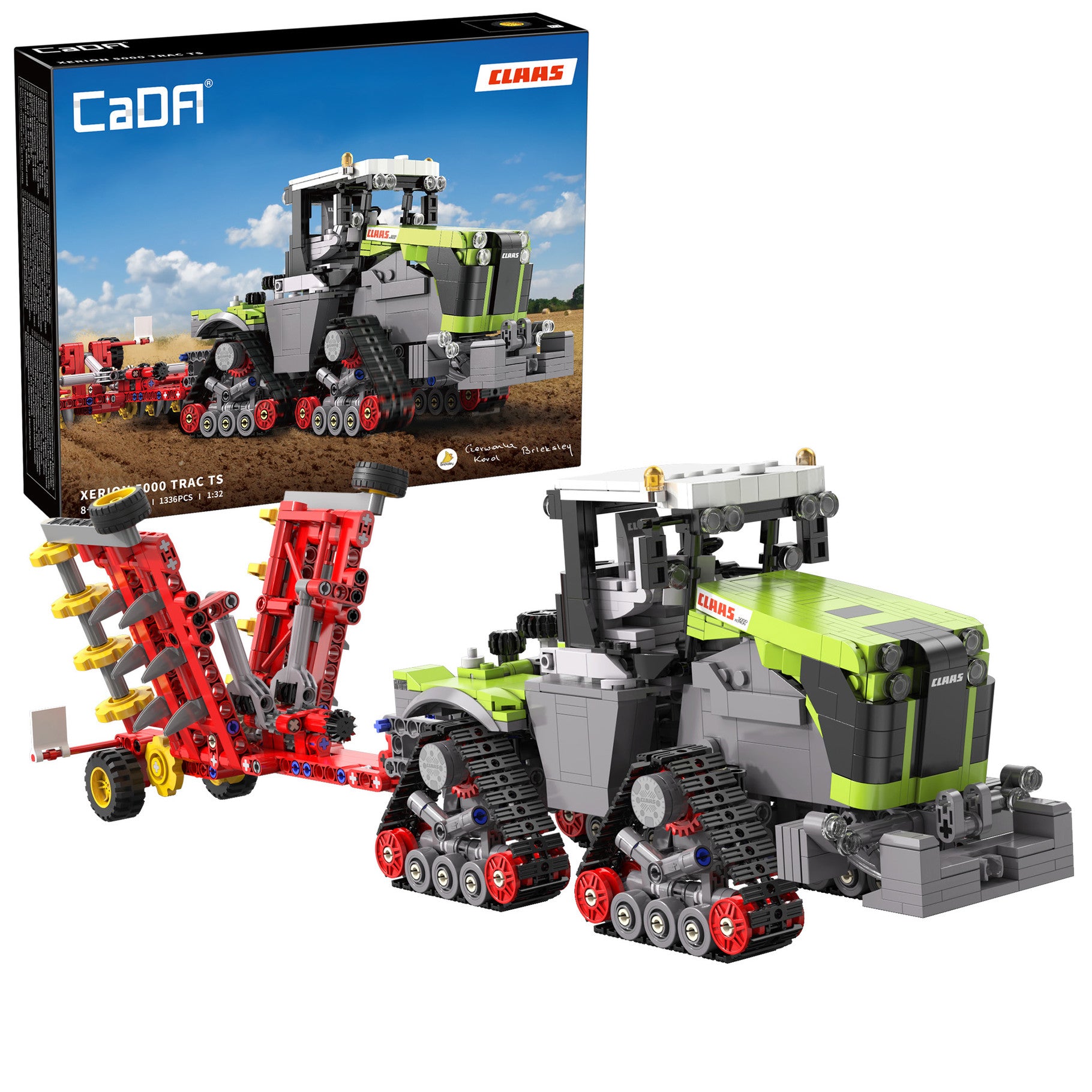 An officially authorised product from the famous agricultural machinery manufacturer CLAAS, it is based on the XERION-5000 crawler tractor with an accurate scale ratio of 1:32. It is packed full of details such as triangular tracks, ploughing tools, cultivation discs, front counterweight, warning strips, beacon lights, side mirrors, and many more. It features manual control with working steering (controlled via an easily accessible knob) and ploughing tools (also controlled via knobs).