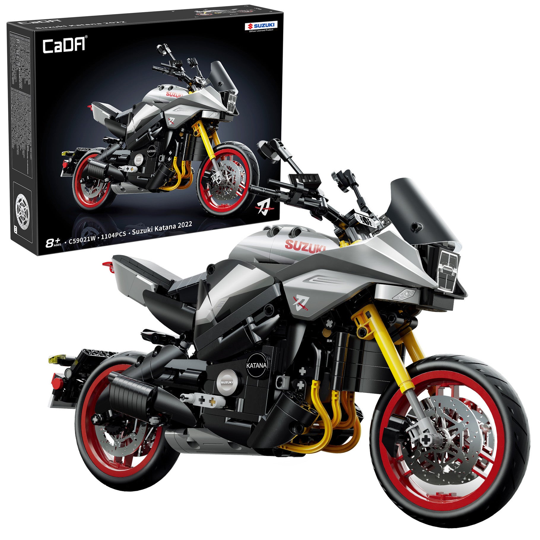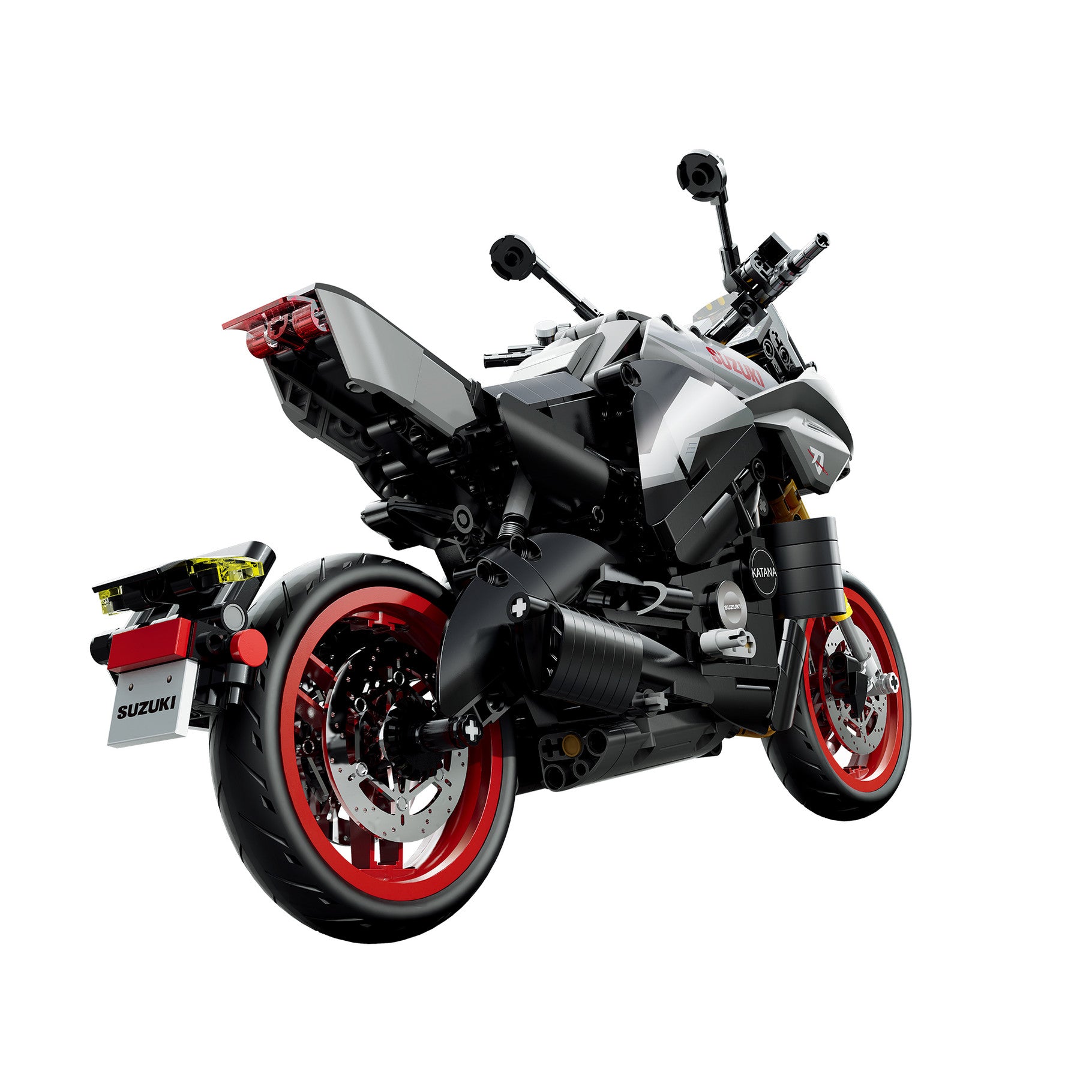 This officially licensed brick model recreates the motorcycle in 1:6 scale with such details as headlights, front shroud, rear view mirror, seat cushion, dashboard, fenders, chain, engine, brake discs and rubber tyres. It also has working front and rear suspension, working steering and handy kickstand to stay upright.