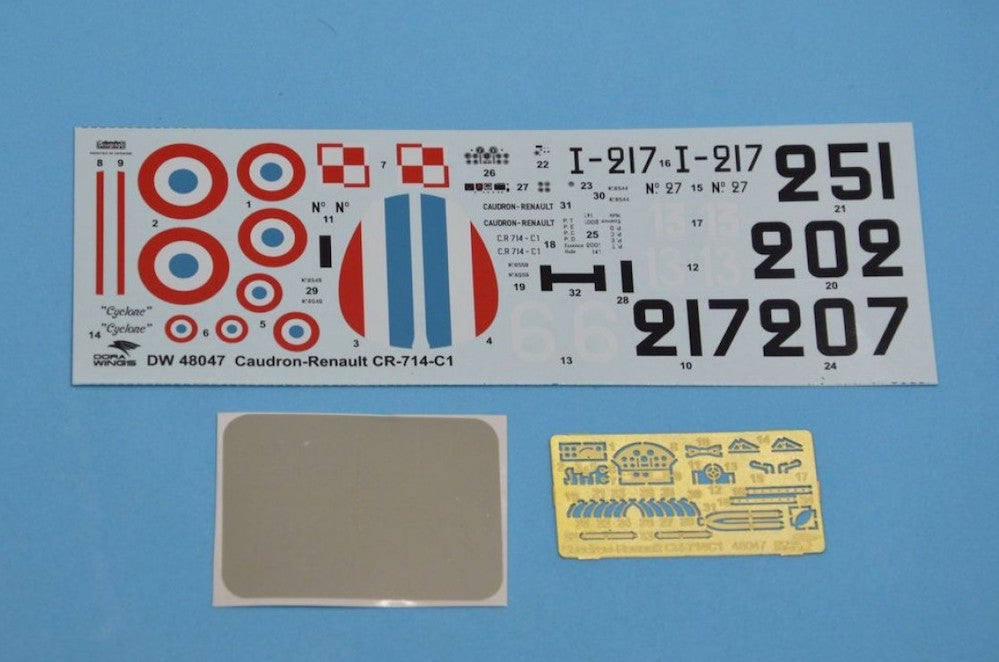 The Dora Wings DW48047 is a 1/48 scale plastic model kit of the French WWII fighter, the Caudron-Renault CR.714 C1 (early version), released in 2021. This injection-moulded kit features the light aircraft designed for the French Air Force, later used by Polish pilots, and includes detailed components typical of the manufacturer's range.