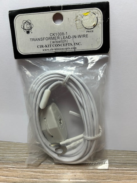 CK1008-1 Transformer Lead-In Wire with Switch. This lead-in wire may be used for those installations requiring the convenience of total dollhouse on/off power control. (Eliminates need for unplugging lead-in wire from dollhouse to disconnect power.) Same in all other respects as CK1008