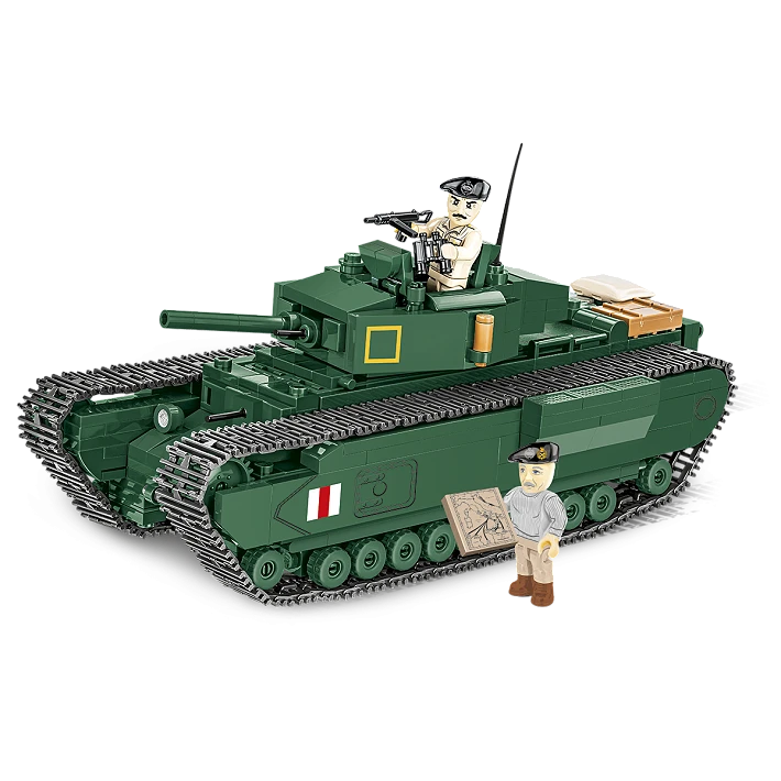 The set was designed in 1:35 scale using 668 COBI construction blocks. The tank was equipped with working tracks, a rotating turret, a movable gun and an opening hatch. The set includes a figure of a British tankman equipped with a beret, a Sten machine gun and binoculars. The second figure is a field marshal in a characteristic sweater, with a beret on his head and a map of the invasion of Italy in his hand. You will certainly recognize this historical figure! The blocks have high-quality prints that reflect the markings and details of the tank and the details of the uniforms of the tank commander and officer.