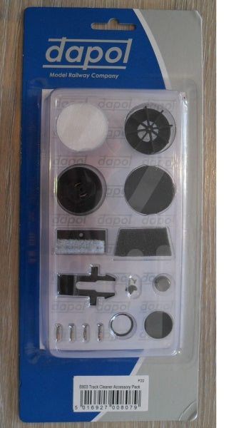 This kit contains spare pads, pick ups, brushes, seals, weights and other accessories for the Dapol OO/HO Gauge Track cleaner.