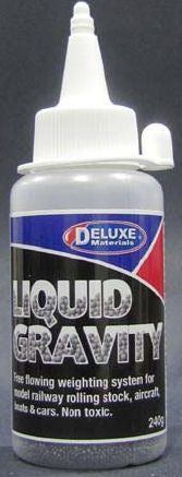 Liquid Gravity is a brand new non-toxic weighting system for models railway rolling stock, radio control models. This is specially designed to pour into and fill small cavities and set in place with an applied adhesive.