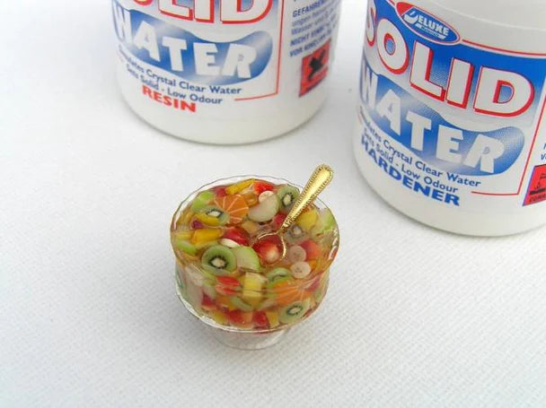 Low odour 2 part resin for simulating crystal clear water. For miniature goldfish bowls, ponds, puddles etc. Sets hard. Colour with resinous dyes only.