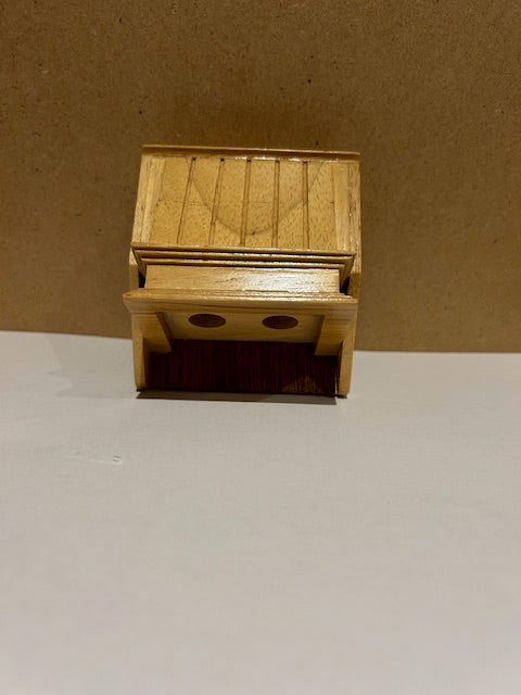 It has a varnished wood finish. There are two "ventilation holes " on underside but these are non operational.