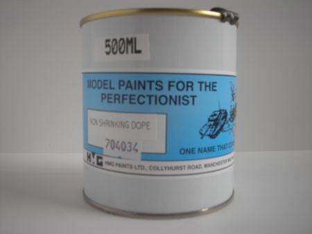 Clear shrinking dope tightens model aircraft fabrics to provide a waterproof lustrous (or satin finish) for aircraft & marine models.