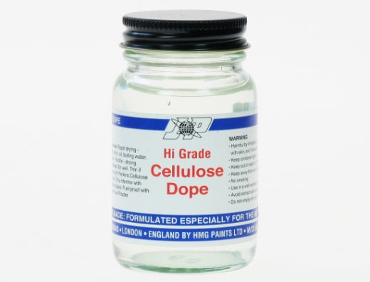 Clear shrinking dope tightens model aircraft fabrics to provide a waterproof lustrous (or satin finish) for aircraft & marine models.