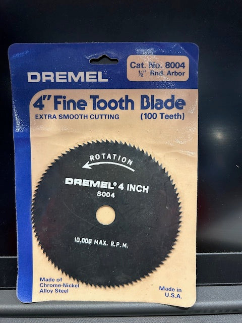 4" Fine tooth blade for extra fine cutting. 1/2" round arbor