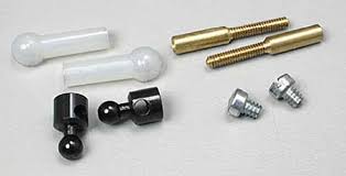 Change old strip aileron connectors to ball link control. Fitting also useful as dual take off connectors. 8 piece set includes: (2) horn wire ball links for 3/32" diameter wire, (2) self threading nylon socket, (2) threaded couplers 3/4" long with 3/8" 2-56 thread for up to .072 wire and (2) 4-40 screws.