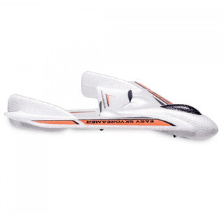 UFO - Indestructible flying object: The Carson Easy Skydreamer is a sophisticated flying device that resembles conventional aeroplanes or drones and has very special features! An intelligent 6-axis gyro function ensures perfect flight characteristics and makes it easy to fly, even for beginners. The aeroplane is ready to run and equipped with 1x 2.4 GHz remote control system, 1x LiPo flight battery (3.7 V/150 mAh), 1x USB charger, 2x transmitter batteries LR06 / AAA, as well as detailed instructions. Fully charged and under full load, up to 15 minutes of exciting flight time are guaranteed. The special Flexipor material from which the glider is made results in outstanding lightness but also extreme stability, which makes the Skydreamer virtually indestructible. Ready for take-off?!