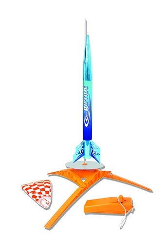 The Estes Riptide Launch Set contains almost everything you need for hours of high flying fun! This shiny rocket is completely assembled by specially trained craftsman and is ultra aerodynamic and has totally awesome highly reflective blue chrome coloured fins and nose cone.