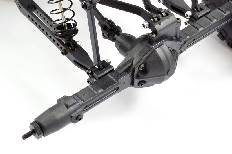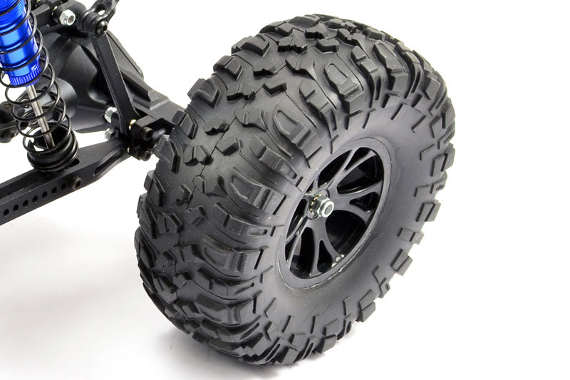 Under the semi-scale tubular roll cage, body panels and cockpit are some new and established features. Blue anodised oil filled aluminium shock absorbers handle the corners. The front suspension assembly is the same as FTX stablemates the Carnage and Bugsta trucks with fully adjustable settings, universal driveshafts, turnbuckles and a heavy-duty metal geared differential. Moving back, the moulded chassis supports the centrally positioned sealed shaft drivetrain, steering servo, motor and receiver box.