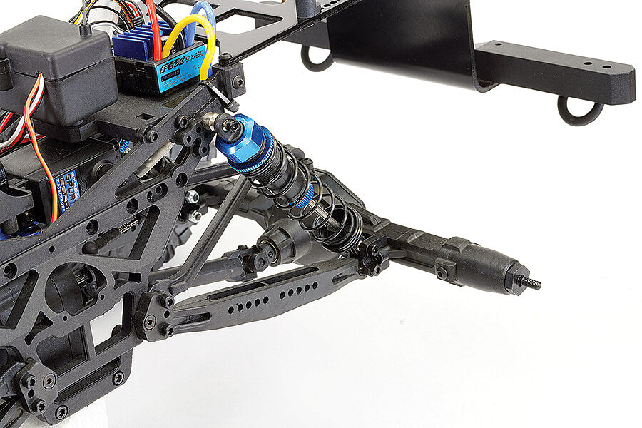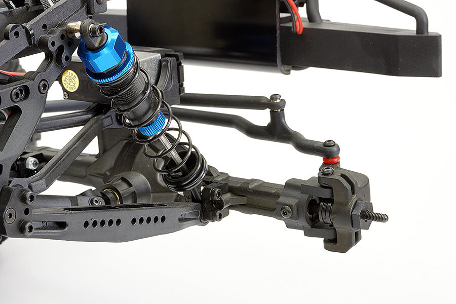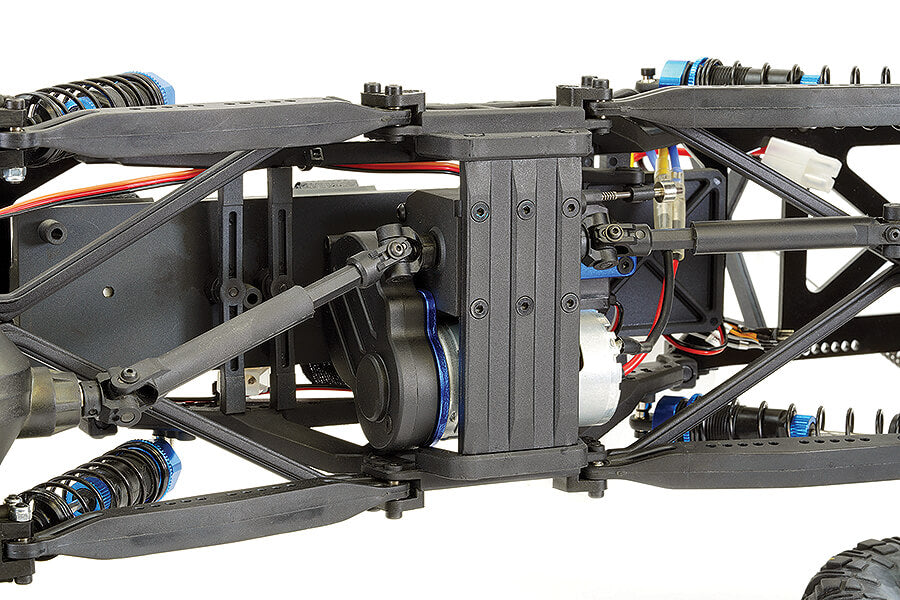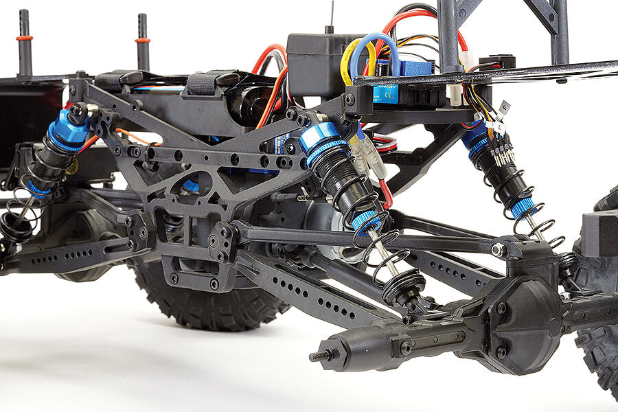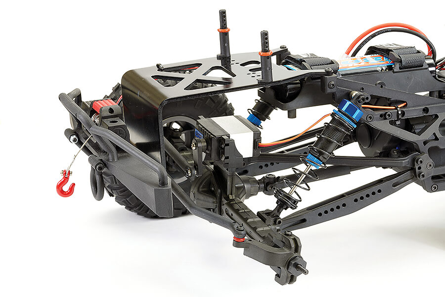 A 35T brushed motor provides the torque, while the same metal output gears, locked axles and multi-link suspension produce the drive you need to pretty much scale over most obstacles.