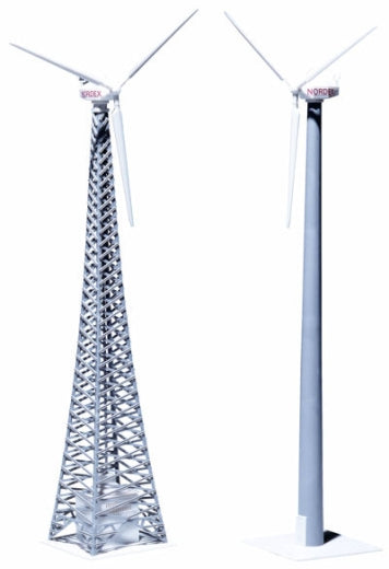 This is a fully motorised (requires a 12-16v AC supply) pre-coloured plastic kit of a wind turbine, typically seen in the countryside or even at sea. Moulded in 2 colours, the kit can be constructed with a lattice pole rather than the more commonly seen steel pole if required. Additional painting will really bring this kit to life. The kit measures 80 x 80 x 360mm with a depth of 40mm. The blades have a diameter of 220mm.