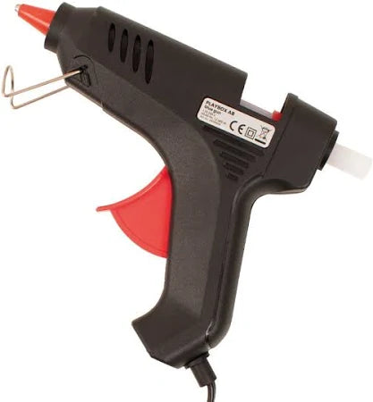 The Playbox Glue Gun (Article Number: 2470924) is a high-temperature, 40W glue gun designed for use with 11 mm diameter glue sticks. It features an ergonomic grip, heats up quickly, and is ideal for creative crafting and larger projects.
