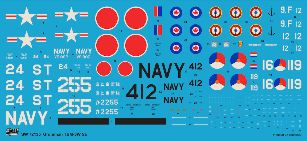 Grumman TBM-3W Guppy. 5 Markings for US Navy, JSDAF, Holland, RCAF and France
