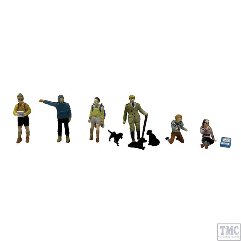 Hikers and Dog Walkers x 6 figures & 3 dogs.