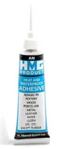 H.M.G Heat and Waterproof Adhesive For repairs to pottery, wood, porcelain, metal, leather, paper, cloth etc etc except rubber.