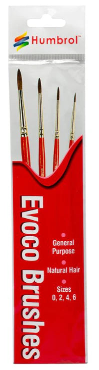 Made from natural hair, Humbrol Evoco brushes are the perfect all-round brush for many model and hobby uses, keeping their shape and quality long after their first use. This pack contains size 0, 2, 4 and 6 Humbrol Evoco Brushes.