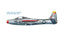 The F-84 Thunderjet was developed in the immediate postwar period by the American company Republic, which aimed to provide the USAF with a new jet-powered fighter-bomber design. Its aerodynamic structure was simple yet very effective and sturdy, featuring a large circular front air intake, straight wings, and a tricycle landing gear with a nose wheel. The General Electric/Allison J35 engine enabled the F-84 to reach speeds of up to 1,000 km/h. The F-84G, which entered production in 1951, represents one of the final versions of Republic’s fighter-bomber. In addition to the USAF, it was used by many NATO countries as part of the “Mutual Defence Assistance” program. Starting in 1952, it equipped several fighter units of the Italian Air Force. It was armed with six 12.7 mm machine guns and could carry an offensive load of nearly 900 kg.