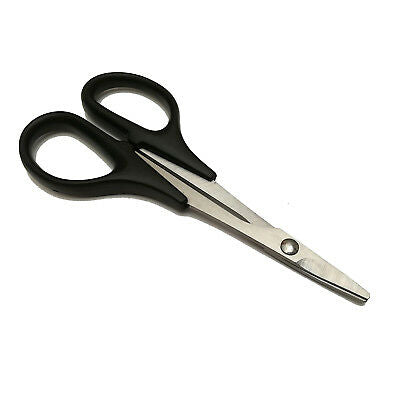 Curved tipped scissors specially designed to cut Lexan bodies used on radio controlled vehicles. These can also be used for airplane canopies, helicopter windshields, and other plastics. Black plastic handles for comfort and control, Stainless steel cutting blades