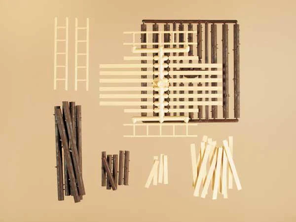18 large round logs, 18 small round logs, 36 large planks, 12 small planks, 6 scaffolding ladders.