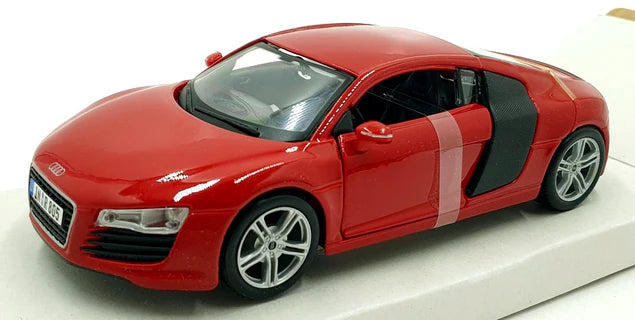 Maisto 1:24 Diecast Audi R8 Model Car in Red, The model is NEW and in excellent condition, but has been previously displayed in the shop only in the box itself. - The box is in good condition, but has slight wear to the window edge and box edges due to shelf display.