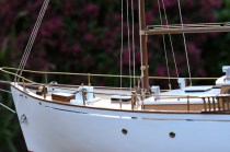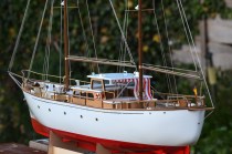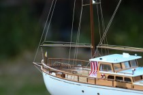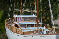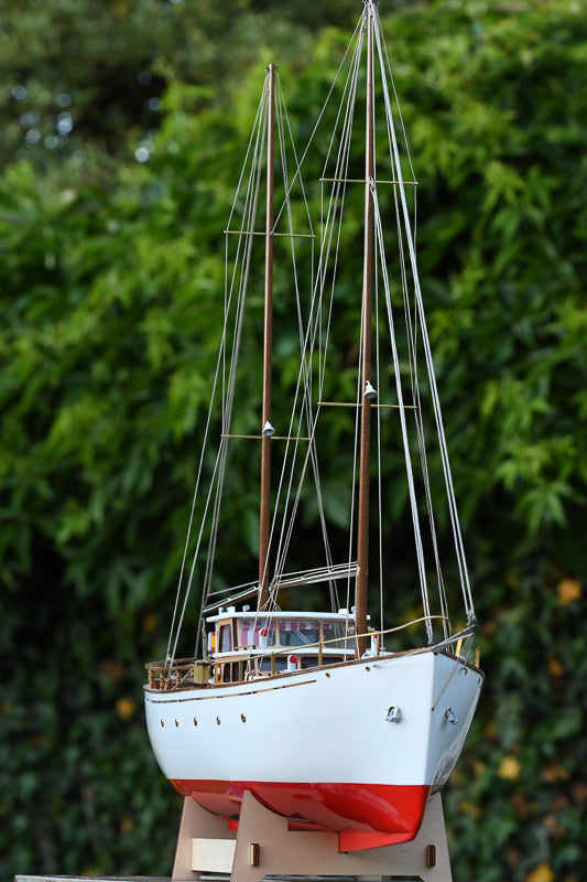 This is a lovely scale reproduction of an ocean going fishing boat, converted into a pleasure yacht. She is a plank on frame construction for radio control or as a fine display model.
