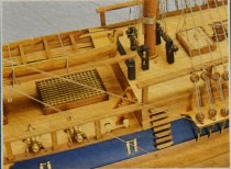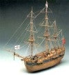 A plank on frame construction, the kit contains:- Building plans with general details English instructions, lost wax brass castings walnut or lime wood planking, wooden masts and spars, brass and walnut fittings, laser etched details, rigging cord and silk flag. All sheet plywood sections are laser cut for accuracy.