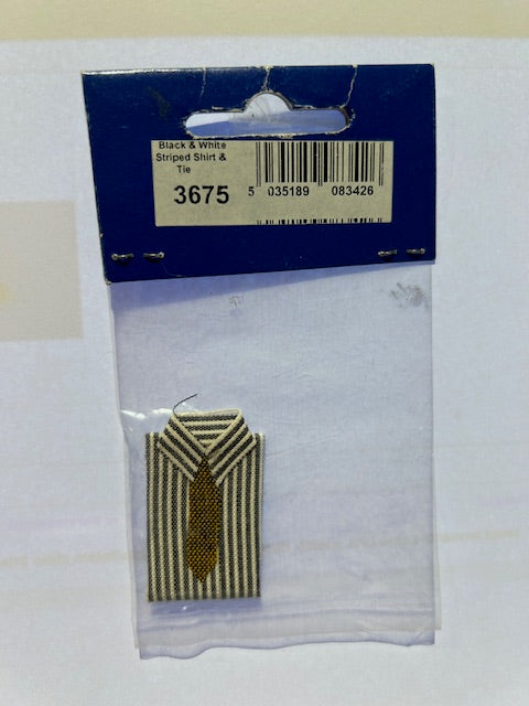 Mens black and white folded striped shirt with tie for 1:12 Dolls House