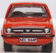 Our Ford Escort Mk2 is a2-door version in a sizzling hot orange-red with black contrasting trim and a completely black interior. It is registered NEC 944P from 1975/76. Note the squarer shape, especially the radiator grille which is finished in black and silver and features the Ford name. Wheels are finished in chrome with black centres with a fine red line to the tyres completing the detailed effect. The boot also features the Ford name with Escort printed on the nearside above the exhaust.