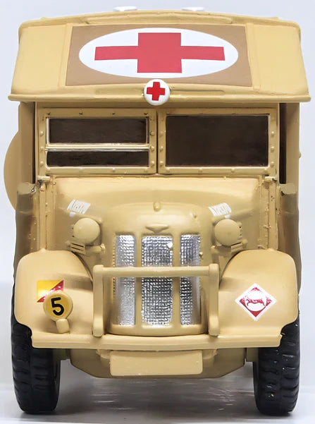 The Austin K2/Y Ambulance, affectionately known as KATY, was built between 1939 and 1945 by Austin at their Longbridge plant in conjunction with Mann Egerton - well-known for their bus body manufacturing expertise. It was quite a large vehicle, 18ft in length, 7ft 5 inches wide and just over 9 feet high. To save as much space as possible for the wounded, the crew was limited to 2-3 personnel. Weighing just over 3 tons, the K2 came with a 6-cylinder 3462 Austin D-Series engine with four speed gearbox and had a top speed of around 50 mph. The vehicle featured two petrol tanks, one on each side holding 12 gallons of fuel each. Just over 13,000 K2 Ambulances were built and proved very popular with British and Commonwealth troops as well as US forces. Two large doors across the back opened up to enable the K2 to accommodate ten casualties sitting or four stretchers. The rear body had been designed specially by the Royal Army Medical Corps and built by Mann Egerton. The driver’s cab did not have doors but folding canvas sheets instead. Similar access also meant that the patients could be reached from the driver’s cab through a small internal door with a seat. The exterior of the vehicle comprised mostly painted canvas. A feature which helps date the variations of the K2 was the shape of the roof vents. Early ones were round and later ones square. Our Oxford tooling is based on the early version with round roof ventilators.