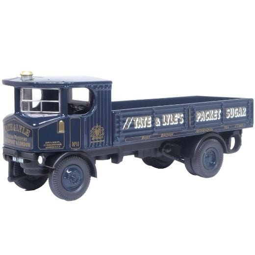 Our dropside is employed in transporting sugar for the company, famous for its signature Tate & Lyle sugar cubes destined for the elegant afternoon tea tables of the day. The equally elegant gold and white printing includes the Royal Warrant ‘By Appointment’ Coat of Arms proudly printed on the cab doors. Registered KA 1458, additional lettering includes the Tate & Lyle name printed in gold across the rear dropside panel and across the front of the cab, which also tells us the sugar refiners were based in Liverpool and London. The cab has glass windows – unusual for the period - and the interior is black and includes a silver chimney with a gold top.