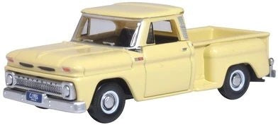 Th Oxford model is based on the 1965 C10 short wheelbase, 2 wheel drive version and it is making its seventh appearance in pale yellow, offset with lots of chrome finish, the customary whitewall tyres and a black interior. Note the 10 classification printed in red on the side of the bonnet just to the front of the cab doors. It is registered CJ 9926 in Utah 65.