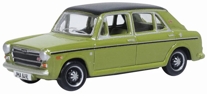 For its latest outing, our four-door Austin 1300 GT is registered JMA 849L from 1972. The authentic paint scheme is typical of the marque, appearing here in a muted green shade with its black ‘vinyl’ roof. The interior seating is moulded in a slightly lighter yellowy green shade, Its GT logo features in red and silver on the radiator grille and its 1300 GT status is also printed on the offside of the boot. The interior is black, as is the chassis and the broad black and silver stripe associated with the GT appears along both sides.