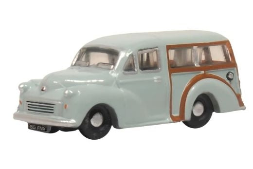 The Oxford Diecast Smoke Grey Morris Traveller ia model scaled at1:148 and comes on a plinth with a clear lid and Oxford Automobile wrap.