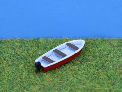N Gauge 13 ft flat bottomed Painted Boat with outboard motor