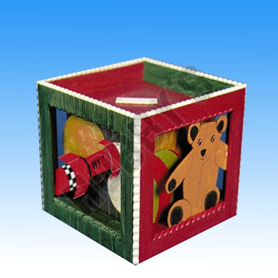 Fitted with a 'Save-N-Play Electronic Musical Movement and has a different design on each side. Rocket, Teddy Bear, Clown, Rocking Horse, the illustration has been finished, using Rustins Colourglaze. Can be fitted with a combination lock (not supplied)