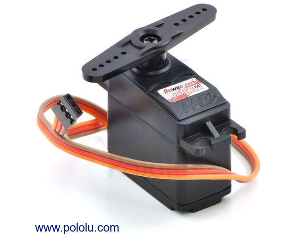 The DS120M digital servo from Power HD, a high-quality servo with digital control electronics for increased performance, is one of the fastest standard-size servos we carry, and it has plenty of torque, too. The output shaft is supported by two ball bearings, and all of the gears are metal for increased durability. Servo horns and associated hardware are included.