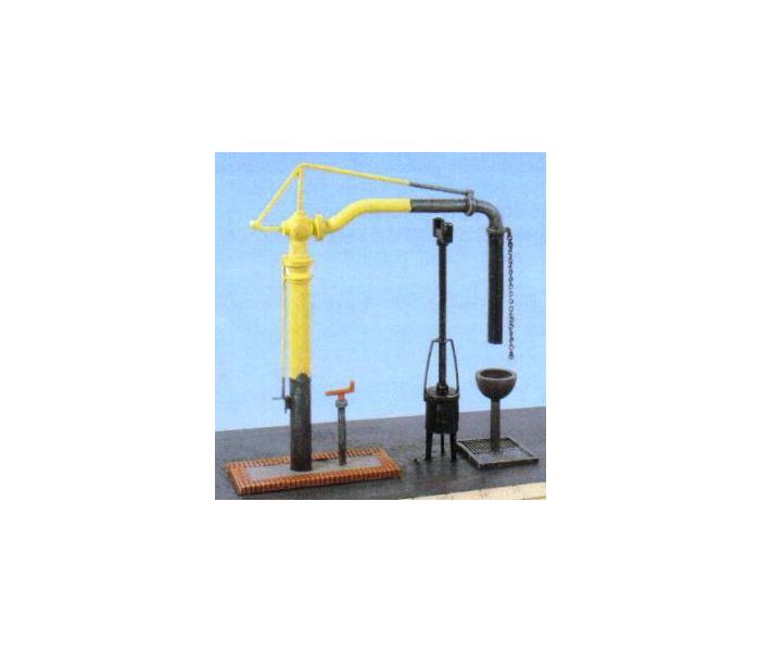 Stations often had these Water Cranes at the end of the platforms so the locomotives could be refilled without detaching them from the train. Also included is a coke brazier, called a 'fire devil' to keep the cast iron pipe from freezing up during the winter. These cranes were usually supplied by a large water tank (see Ratio Water Tower kits 215, 256 and Loco Servicing Depot kit 206). Supplied with some pre-coloured parts although painting and/or weathering can add realism; glue is required to complete this model.