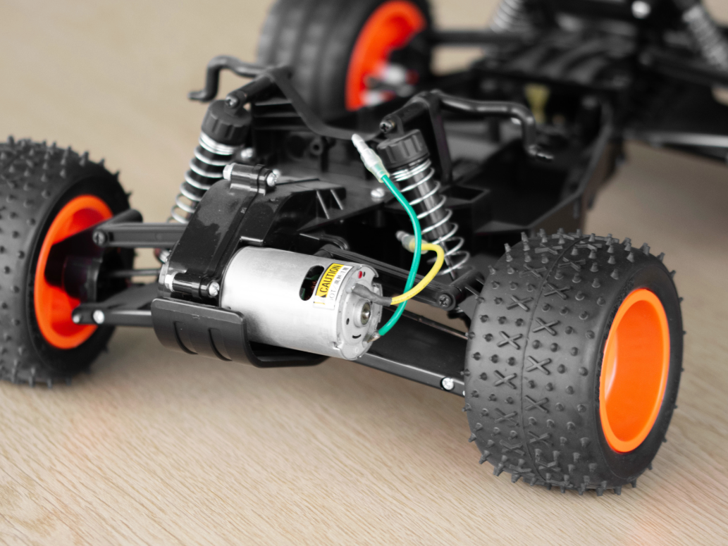 This tough, lightweight ABS bathtub chassis features a rear-mounted motor, rear-wheel drive layout. Fully-enclosed gearbox provides protect ion against dirt and debris and is equipped with differential gears to offer smooth cornering.