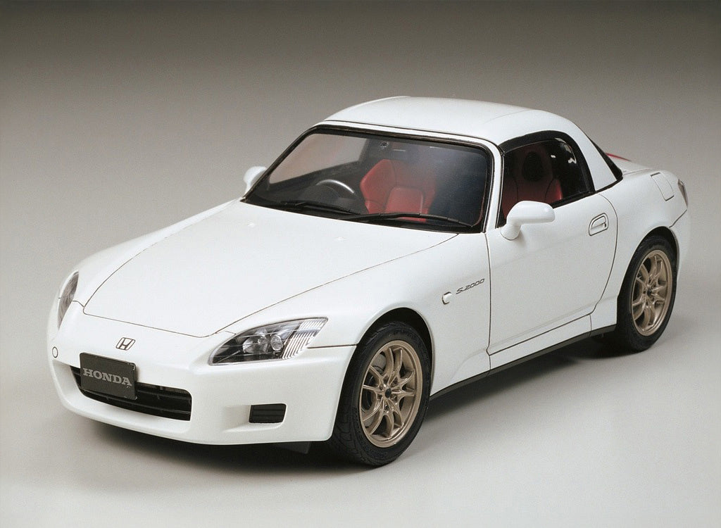 Honda's first passenger production car, the S500 open two seater sportscar, was first announced in the 1962 Tokyo Motor Show, going on sale the following year. After the production termination of its successor, the S800, Honda moved away from producing front-engine/rear-wheel drive sports cars. September of 1998 saw the sensational rebirth of this type, with the announcement of the S2000. This open two seater features the traditional sports car look with a puposeful long nose/short deck styling. Futuristic headlights wrap around the side, appearing to be pulled back, poised for speed. The naturally aspirated 2.0 liter inline-4 DOHC-VTEC powerplant pumps out over 250hp, yet still manages to reduce toxic exhaust emissions to 1/10th the level of its predecessors. The positioning of the engine is also ideal, sitting just behind the front wheel axle in interest of 50/50 weight distribution. The sturdy body and superior road handling, meshed with a four-wheel double wishbone suspension and a newly developed 6-speed manual transmission, offer high tractability and synthesis between car and driver. The inside of the cabin features bucket seats, state of the art digital indicators, and a red button for starting the engine. Of course, the impact safe design, air bag, and all the other safety features of modern sports cars have also been thoroughly considered. Developed in celebration of Honda's 50th anniversary, the S2000 will surely take it place as the 2000cc sports car to beat in the 21st century.