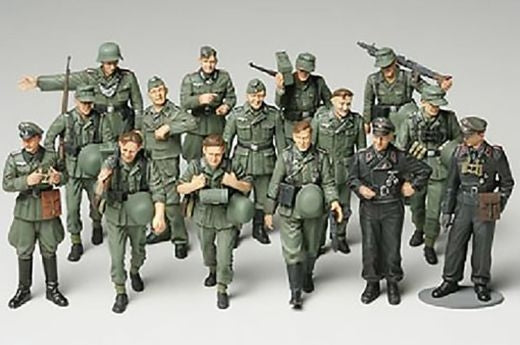 This latest 1/48 scale figure set features WWII German soldiers in relaxed poses, standing, walking, wearing field caps and with weapons shouldered. Also includes figures depicting tank crew at rest. Two all-new officer figures and military policeman, which are available now for the first time in any scale, are also included. This set is perfect for modeling non-combat scenes and dioramas of life behind the lines. _Infantry figures feature realistic M43 field uniforms. _Includes separately molded weapons and equipment such as machine gun tripod mount.