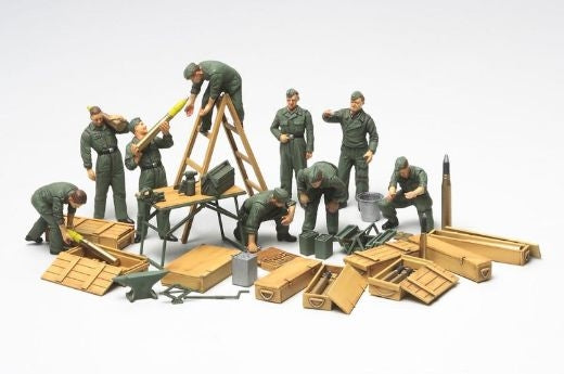 Tamiya provides more 1/48 scale diorama options for military modelers everywhere with the release of this extensive figure and accessory set depicting repair and replenishment personnel. Match them with any of our large lineup of 1/ 48 MM German vehicles to add more life to your display.