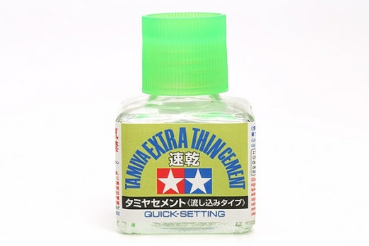 • Original Tamiya Extra Thin Cement (Item 87038) is still recommended for use in situations where you wish to fill larger gaps and seams.