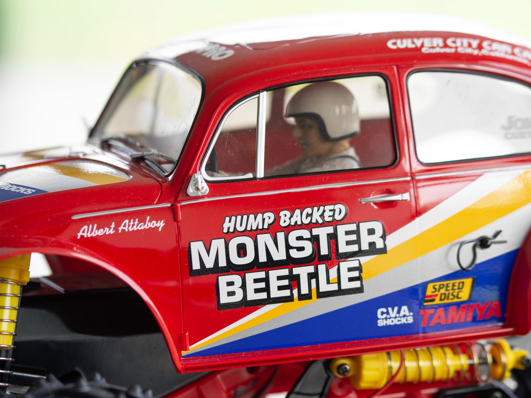 This re-release version of the Monster Beetle assembly kit features a number of updates while keeping the basic layout of the original off-road car released in 1986. It features a realistic customised Beetle body depicted in tough polystyrene resin, with metal-plated parts supplied in the kit to add the finishing touch for handles and headlight frames. A resin driver figure is the icing on top of the cake!